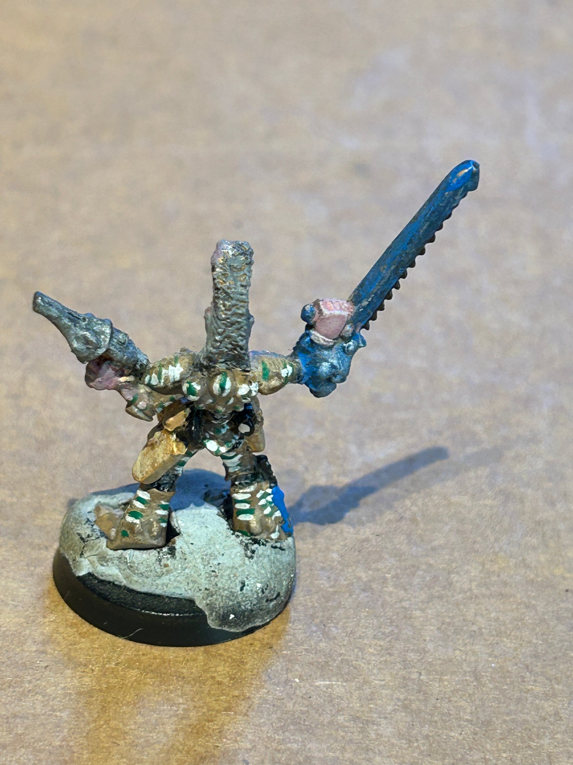 Has modelling clay stuck to the base to create some kind of giant tactical bolder. I’m unsure as to whether he has a tag