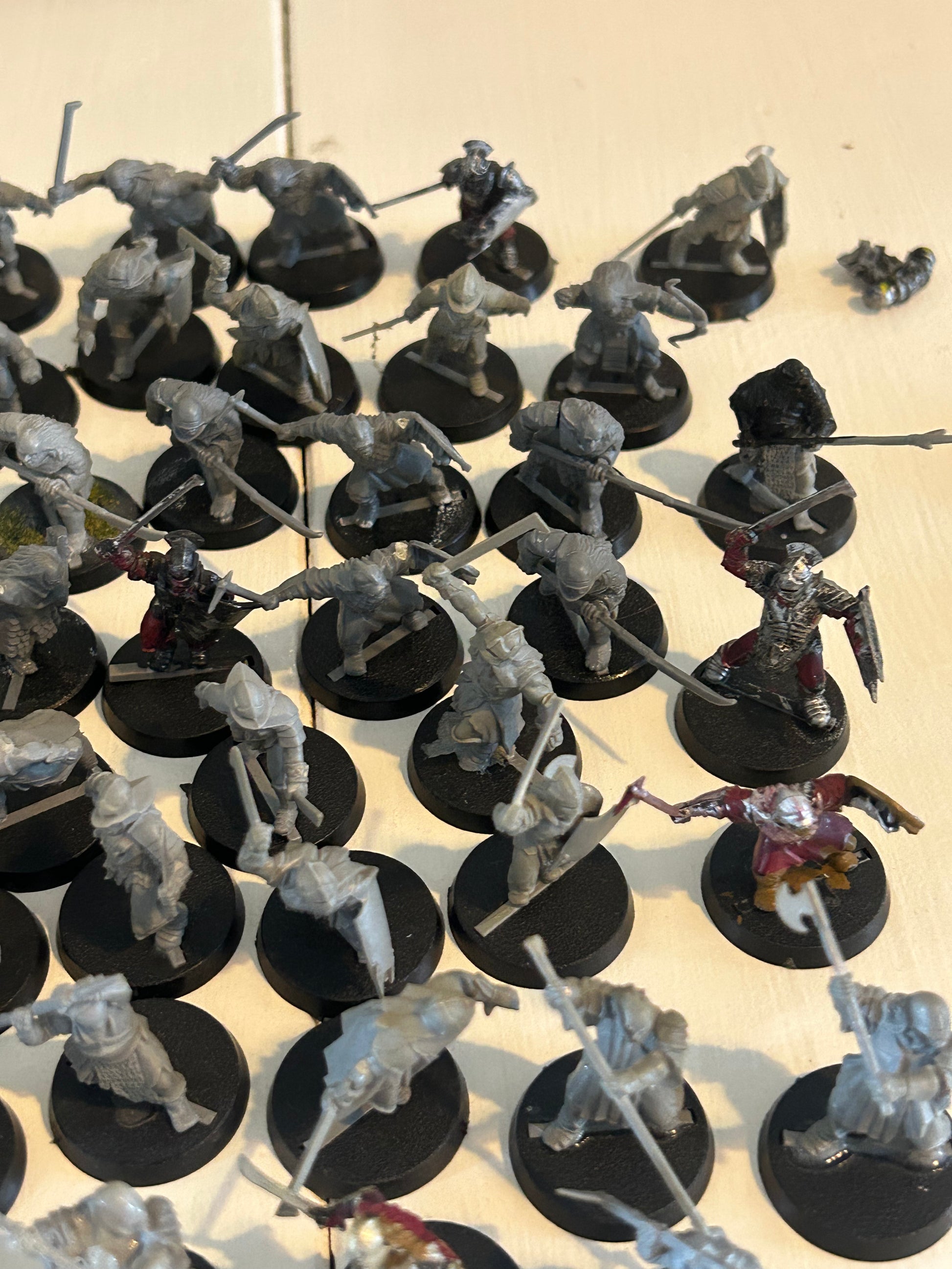 MESBG large evil ork Uruk Hai and goblin army (1 troll, 23 goblins, 2 warg riders, 76 orcs/uruk hai, plus 9 damaged models)