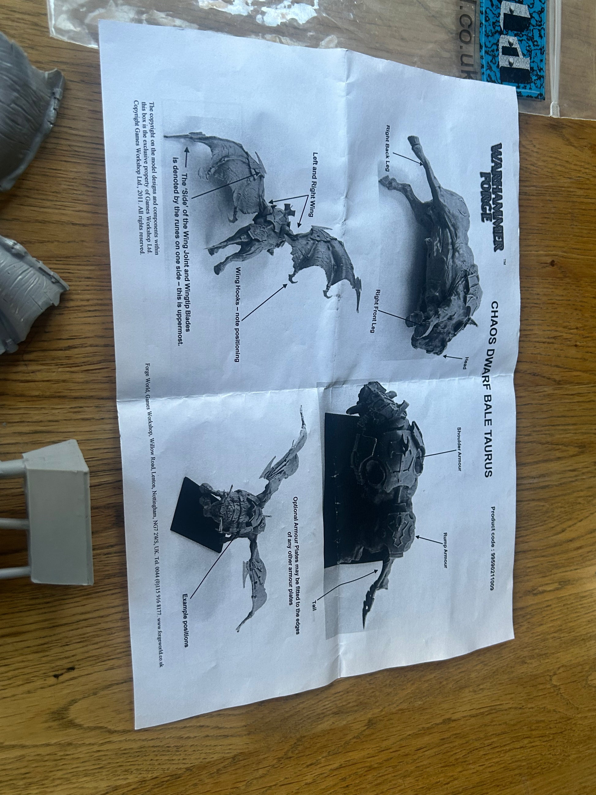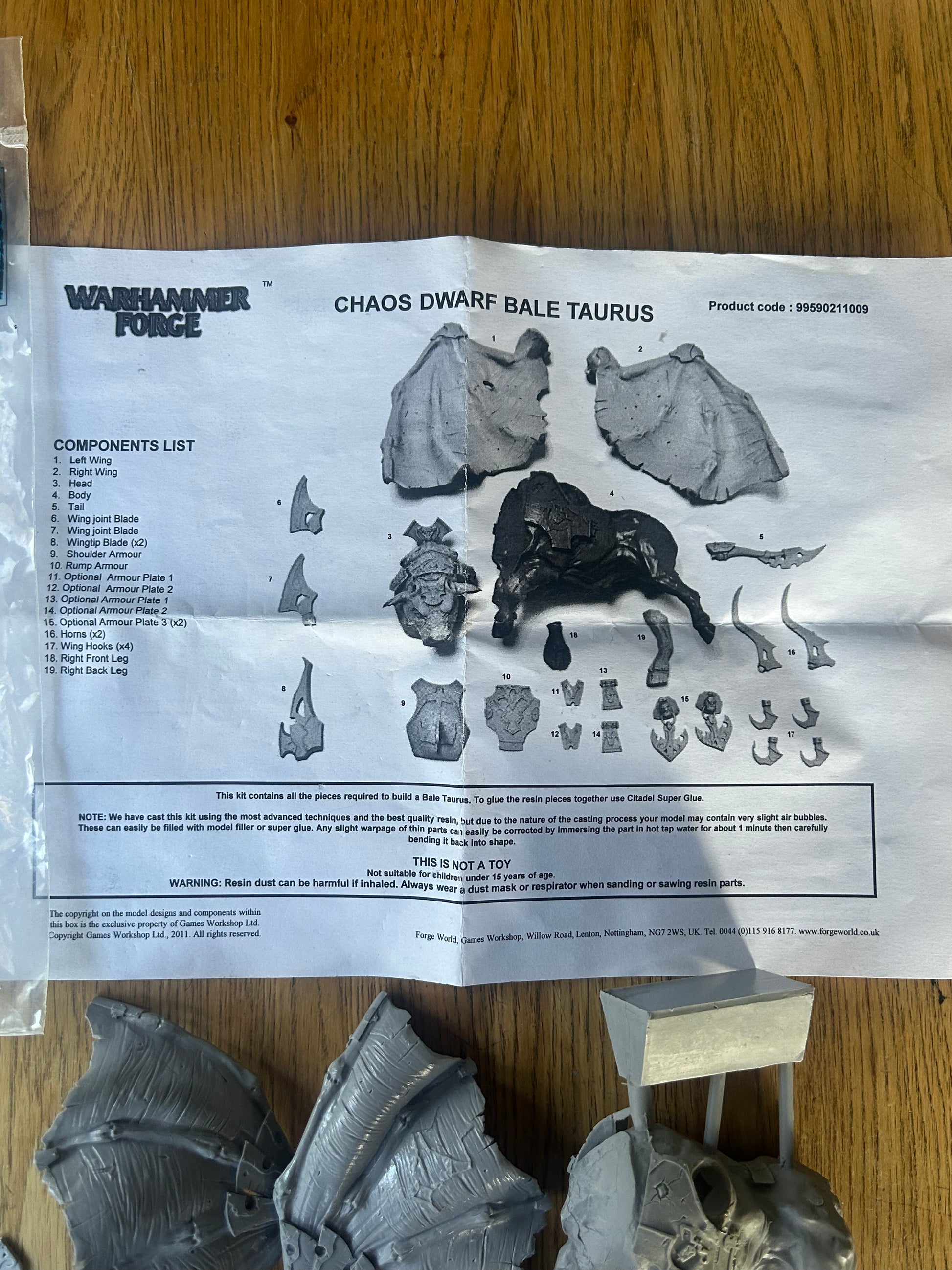 Warhammer fantasy chaos dwarfs forge world Bale Taurus in bag and on Sprue (some of the parts have come off the sptues but it’s complete)